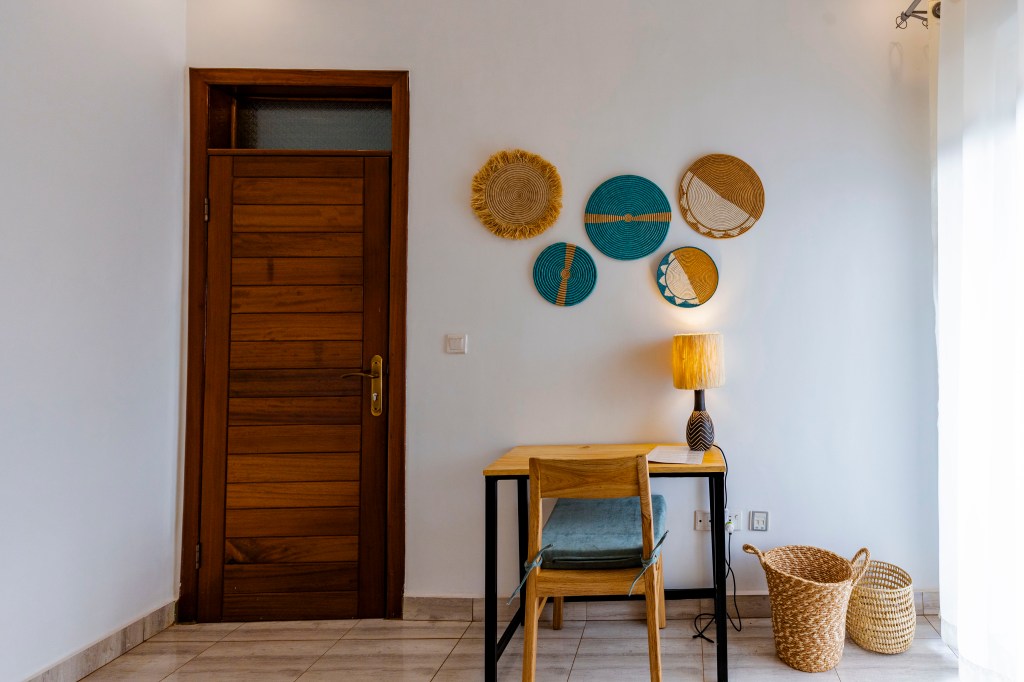 Fully furnished room with cupboard, table, chair, bed size 1,40 x 2,00, own bathroom, ground level